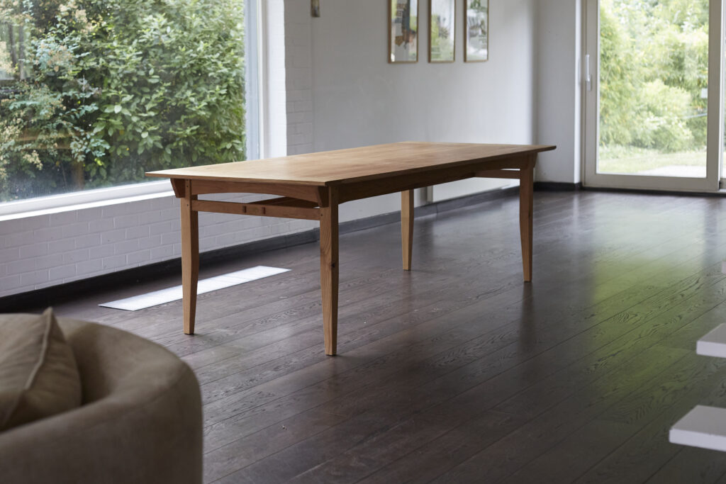 Table en chêne massif de 240 cm, design japonais, assemblage traditionnel, sur mesure